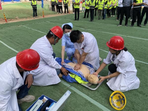演練現(xiàn)場(chǎng)分別模擬了溝槽坍塌導(dǎo)致的人員壓埋和有限空間作業(yè)中人員氣體中毒情況,在險(xiǎn)情危及人員生命財(cái)產(chǎn)安全的情況下,項(xiàng)目部啟動(dòng)應(yīng)急救援工作。“報(bào)告指揮長(zhǎng),現(xiàn)場(chǎng)K0+400處污水溝槽發(fā)生坍塌,溝槽內(nèi)人員共4人,目前撤離出3人,現(xiàn)有1人部分軀體被埋,傷勢(shì)不明!”。模擬溝槽作業(yè)過(guò)程中邊坡突然塌方,導(dǎo)致1名工人被塌方土體埋壓,現(xiàn)場(chǎng)施工員發(fā)現(xiàn)后第一時(shí)間上報(bào)險(xiǎn)情,隨著指揮人員一聲令下,各救援小組迅速抵達(dá)現(xiàn)場(chǎng),按方案分工開(kāi)展救援:應(yīng)急救援組根據(jù)事故情況快速確定救援方案并組織人員車(chē)輛施救;醫(yī)療救護(hù)組在事故發(fā)生的第一時(shí)間內(nèi)判斷傷員傷情并進(jìn)行有效急救;警戒保衛(wèi)組立即設(shè)置禁區(qū),做好現(xiàn)場(chǎng)監(jiān)護(hù)防止二次塌方并引導(dǎo)救援人員及車(chē)輛快速進(jìn)出;通訊聯(lián)絡(luò)組迅速聯(lián)系醫(yī)院及當(dāng)?shù)叵啦块T(mén);事故調(diào)查組調(diào)查并分析事故發(fā)生的原因……演練過(guò)程中,參演人員反應(yīng)迅速、各司其職,有條不紊推進(jìn)演練高效進(jìn)行,取得了預(yù)期效果。演練模擬施工人員在井下有限空間作業(yè)時(shí),突發(fā)中毒窒息事件。“李工?李工?”協(xié)同作業(yè)人員發(fā)現(xiàn)井下人員沒(méi)有回應(yīng),確認(rèn)發(fā)生中毒情況,立刻向現(xiàn)場(chǎng)負(fù)責(zé)人報(bào)告異常情況,負(fù)責(zé)人立刻撥打119、120聯(lián)系消防人員和醫(yī)務(wù)人員進(jìn)行救助,并立即開(kāi)啟應(yīng)急救援預(yù)案。演練過(guò)程中,救援人員完成了對(duì)外聯(lián)絡(luò)、安全警戒、應(yīng)急搶救等流程,做到信息上報(bào)及時(shí)、事故警戒迅速、人員救助合規(guī),圓滿完成了救援任務(wù)。