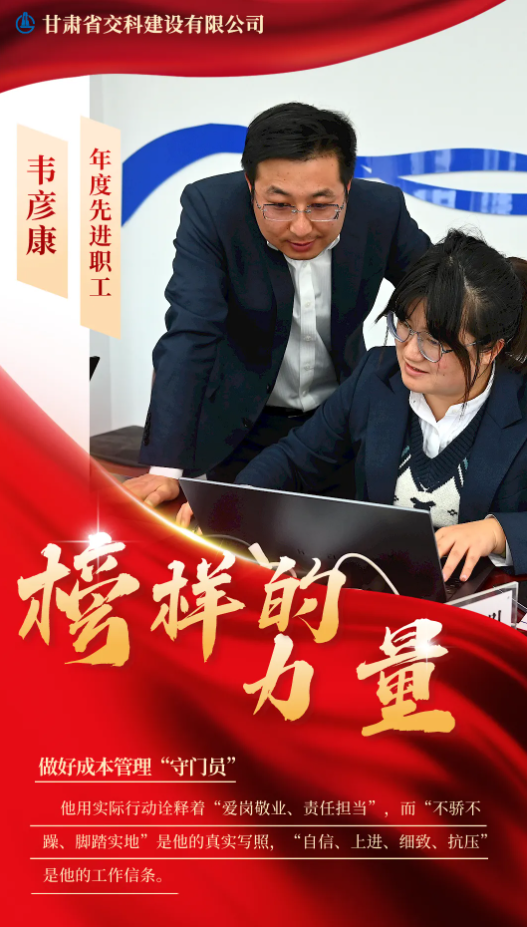 韋彥康,現(xiàn)任甘肅建投交科公司二公司經(jīng)營預(yù)算科科長。工作以來,他勇挑重?fù)?dān),親力親為,全面協(xié)調(diào)完成分公司及項(xiàng)目部經(jīng)營預(yù)算工作,與團(tuán)隊(duì)成員共同做好公司成本管理的“守門員”。