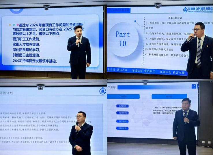 2025年是實(shí)現(xiàn)“十四五”規(guī)劃目標(biāo)任務(wù)的關(guān)鍵一年,也是交科公司三公司實(shí)現(xiàn)管理提升的突破一年,我們要緊跟集團(tuán)公司及公司發(fā)展步伐,落實(shí)好如下工作:一是加強(qiáng)學(xué)習(xí),實(shí)現(xiàn)綜合提升。堅(jiān)持學(xué)理論知識(shí),提政治素養(yǎng)。學(xué)業(yè)務(wù)技能,提履職能力;二是奮力拼搏,推進(jìn)全員經(jīng)營(yíng)新局面。全體職工要主動(dòng)擔(dān)當(dāng)作為,在深耕蘭州新區(qū)主陣地的同時(shí)積極“走出去”,全力開(kāi)拓臨夏、慶陽(yáng)、平?jīng)龅仁?nèi)外新市場(chǎng)。在做強(qiáng)市政、基礎(chǔ)設(shè)施板塊的同時(shí)努力向水利水電、城市更新等新領(lǐng)域、新賽道全面邁進(jìn);三是強(qiáng)抓落實(shí),推動(dòng)管理再上新臺(tái)階。緊緊圍繞“強(qiáng)管理、抓效能、提服務(wù)、樹(shù)品牌”這一目標(biāo),著力提升職工安全質(zhì)量和成本管控意識(shí)、健全成本管控體系、夯實(shí)成本控制責(zé)任,切實(shí)提升工作效率,促進(jìn)各項(xiàng)工作走深走實(shí);四是釋放潛能,激發(fā)人才活力。要關(guān)注職工成長(zhǎng)和職業(yè)發(fā)展規(guī)劃,為職工提供施展才干的有效平臺(tái)。五是統(tǒng)一思想、凝聚共識(shí)、共謀發(fā)展。要始終秉持“發(fā)展企業(yè) 富裕職工”的理念,一切工作要以全體職工的切身利益為出發(fā)點(diǎn)和落腳點(diǎn),上下一心、同舟共濟(jì),為全面完成2025年各項(xiàng)任務(wù)指標(biāo)接續(xù)奮斗。