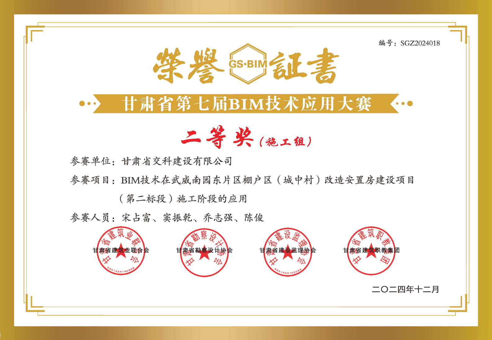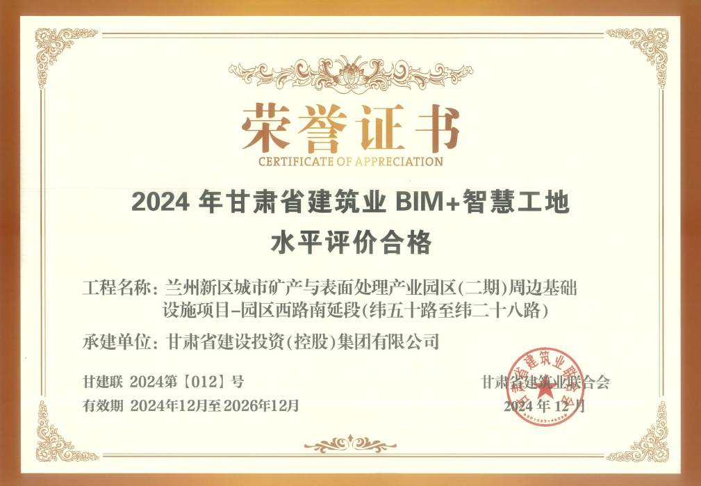 近日,甘肅省第七屆BIM技術應用大賽結果揭曉,甘肅省交科建設有限公司選送的《BIM技術在武威南園東片區(qū)棚戶區(qū)(城中村)改造安置房建設項目(第二標段)施工階段的應用》《蘭州新區(qū)礦產與表面處理產業(yè)園區(qū)(二期)周邊基礎設施項目—園區(qū)西路南延段(緯五十路至緯二十八路)施工階段BIM技術應用》分獲施工組二等獎、優(yōu)秀獎,蘭州新區(qū)礦產園區(qū)西路南延段項目榮獲“2024年甘肅省建筑業(yè)BIM+智慧工地水平評價合格項目”。