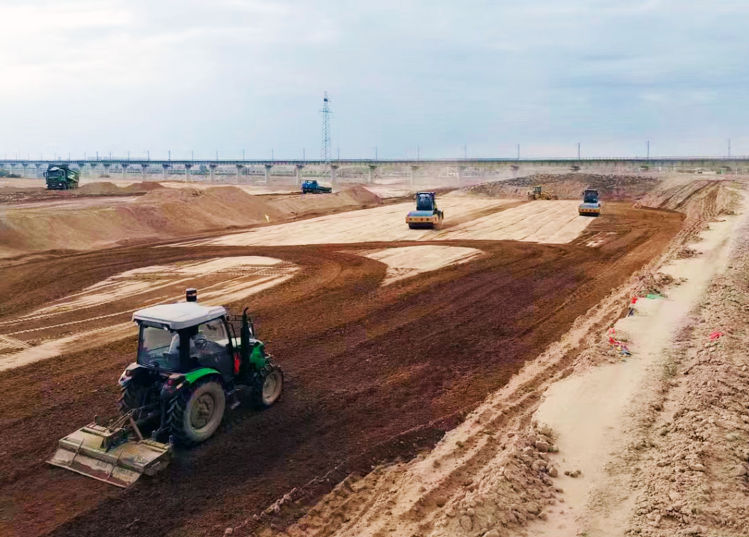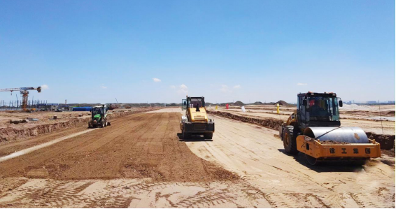 項(xiàng)目自進(jìn)場(chǎng)以來,公司高度重視,積極主動(dòng)謀劃,選優(yōu)配齊項(xiàng)目管理團(tuán)隊(duì),建立安全質(zhì)量管理體系,編制切實(shí)可行的管理策劃,在確保安全、質(zhì)量、成本前提下,提高工作效率,細(xì)化管理措施,確保實(shí)現(xiàn)業(yè)主確定的節(jié)點(diǎn)任務(wù)目標(biāo)。截至目前,已完成原地面強(qiáng)夯163000㎡、路基土方回填93000m3、外棄土方367600m3、西側(cè)場(chǎng)平土方311000m3、三七灰土填筑29000m3的工作量。