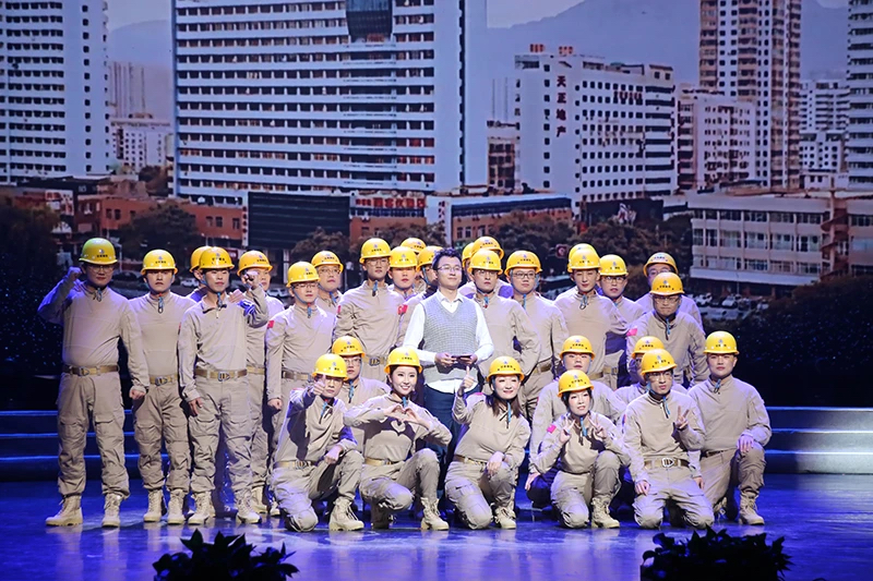 演出前,一遍遍音樂(lè)、一次次排練,不斷地?fù)竸?dòng)作、擺位置、變隊(duì)形,16名演職人員仔細(xì)聽從指導(dǎo)老師安排、配合聯(lián)排單位同事,專心投入每一次排練過(guò)程中,只為了把最精彩的節(jié)目和狀態(tài)完美呈現(xiàn)在所有觀眾面前,共同為70周年舞臺(tái)上耀眼時(shí)刻做足準(zhǔn)備。“正值項(xiàng)目節(jié)點(diǎn)工作期間,接到公司排練任務(wù),及時(shí)與項(xiàng)目部溝通,協(xié)調(diào)工作時(shí)間,按時(shí)參加了音樂(lè)錄制、節(jié)目彩排,加班加點(diǎn)完成標(biāo)書制作,確保工作‘不耽誤’!”和高祥一樣,大家把此次節(jié)目順利演出作為一份責(zé)任、更是一份榮耀,紛紛從繁忙工作中協(xié)調(diào)時(shí)間參加,“白天排練、晚上加班”成為每個(gè)人30余天里的常態(tài)。然而,部分職工也在此過(guò)程中悄然成長(zhǎng)。“本來(lái)性格就靦腆,也沒有參加過(guò)大活動(dòng),看到其他同事在排練時(shí)動(dòng)作協(xié)調(diào)自然,自己心里更沒有底。”崔珍源雖鮮有參加大型活動(dòng)經(jīng)歷,但在排練中他認(rèn)真學(xué)習(xí)動(dòng)作要領(lǐng),迅速掌握訣竅,每天都看著訓(xùn)練視頻找節(jié)拍、盯位置,再也不是老師口中那個(gè)“記不住動(dòng)作拖后腿的同事”,他告訴筆者“在正式演出炙熱的聚光燈下,我再也不認(rèn)為自己還是那個(gè)為了‘湊人數(shù)、完任務(wù)’而參加表演的一份子!”“雖然排練很辛苦,但在音樂(lè)戛然而止的時(shí)刻,聽到現(xiàn)場(chǎng)觀眾席熱烈的掌聲,就覺得很欣慰,感覺所有的辛苦和努力都值得!”排練期間,李娜手頭工作并不輕松,令她分身乏術(shù)。時(shí)間緊、任務(wù)重、人手缺,作為代表公司參演的唯一女演職人員,她總是在休息時(shí)間和同伴們互相討論,找到適合自己的方法,打磨動(dòng)作要領(lǐng),展現(xiàn)最優(yōu)姿態(tài),她告訴筆者“自己的辛苦和公司的榮譽(yù)相比,真算不上什么,負(fù)責(zé)的事,要做就做到最好!”