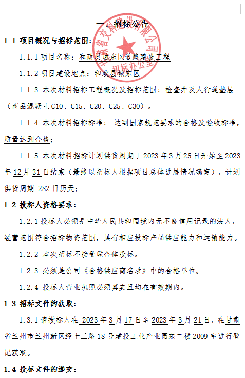 和政縣城東區(qū)道路建設(shè)工程招標公告