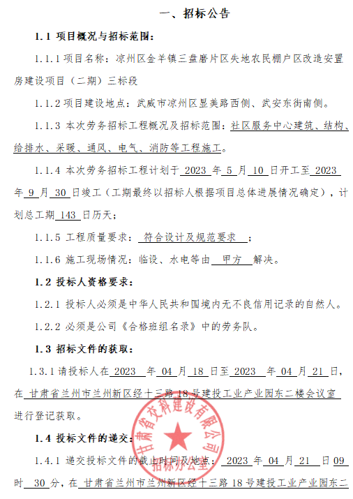 涼州區(qū)金羊鎮(zhèn)三盤磨片區(qū)失地農(nóng)民棚戶區(qū)改造安置房建設(shè)項目(二期)三標(biāo)段 社區(qū)服務(wù)中心勞務(wù)招標(biāo)公告
