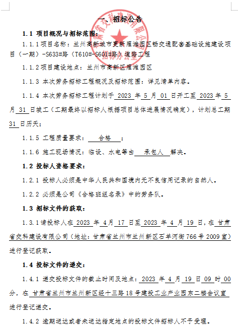 蘭州高新城市更新雁灘園區(qū)暢交通配套基礎(chǔ)設(shè)施建設(shè)項目(一期)-S633#路(T610#-S601#路)道路工程雨水、污水施工勞務(wù)分包招標(biāo)