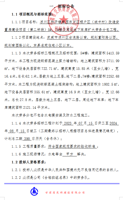 涼州區(qū)和平鎮(zhèn)南園東片區(qū)棚戶區(qū)(城中村) 改造安置房建設(shè)項(xiàng)目(第二標(biāo)段) 5#、7#樓及周邊地下車庫(kù)-勞務(wù)招標(biāo)公告