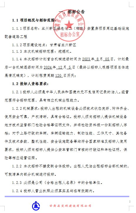 蘭州新區(qū)綠色化工(棚改)安置房項(xiàng)目周邊基礎(chǔ)設(shè)施配套道路工程機(jī)械租賃招標(biāo)公告