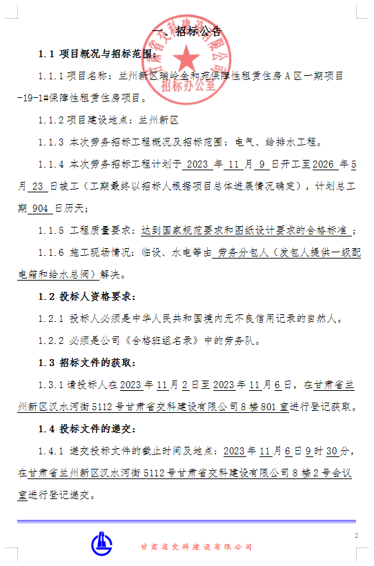 蘭州新區(qū)瑞嶺金和苑保障性租賃住房A區(qū)一期項(xiàng)目-19-1#保障性租賃住房-招標(biāo)公告