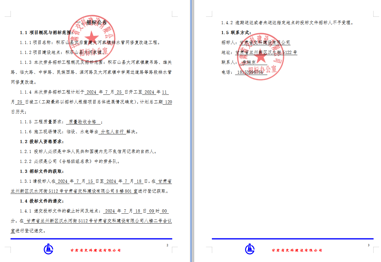 積石山縣災(zāi)后重建大河家鎮(zhèn)排水管網(wǎng)修復(fù)改造工程-勞務(wù)分包招標公告