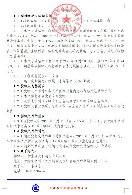 東鄉(xiāng)縣那勒寺鎮(zhèn)沿川經(jīng)濟(jì)帶產(chǎn)業(yè)道路建設(shè)工程專業(yè)分包招標(biāo)公告