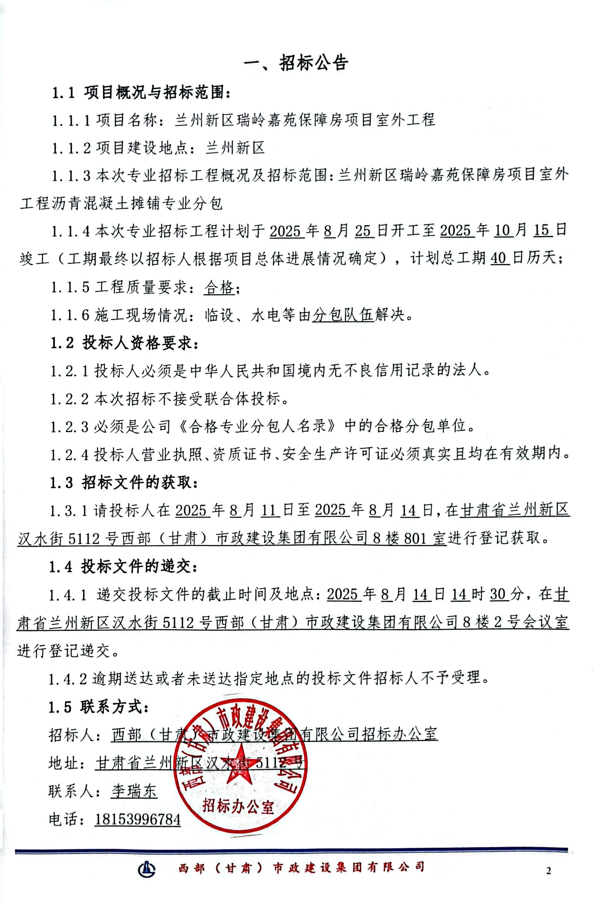 蘭州新區(qū)瑞嶺嘉苑保障房項(xiàng)目室外工程瀝青混凝土攤鋪專業(yè)分包-招標(biāo)公告