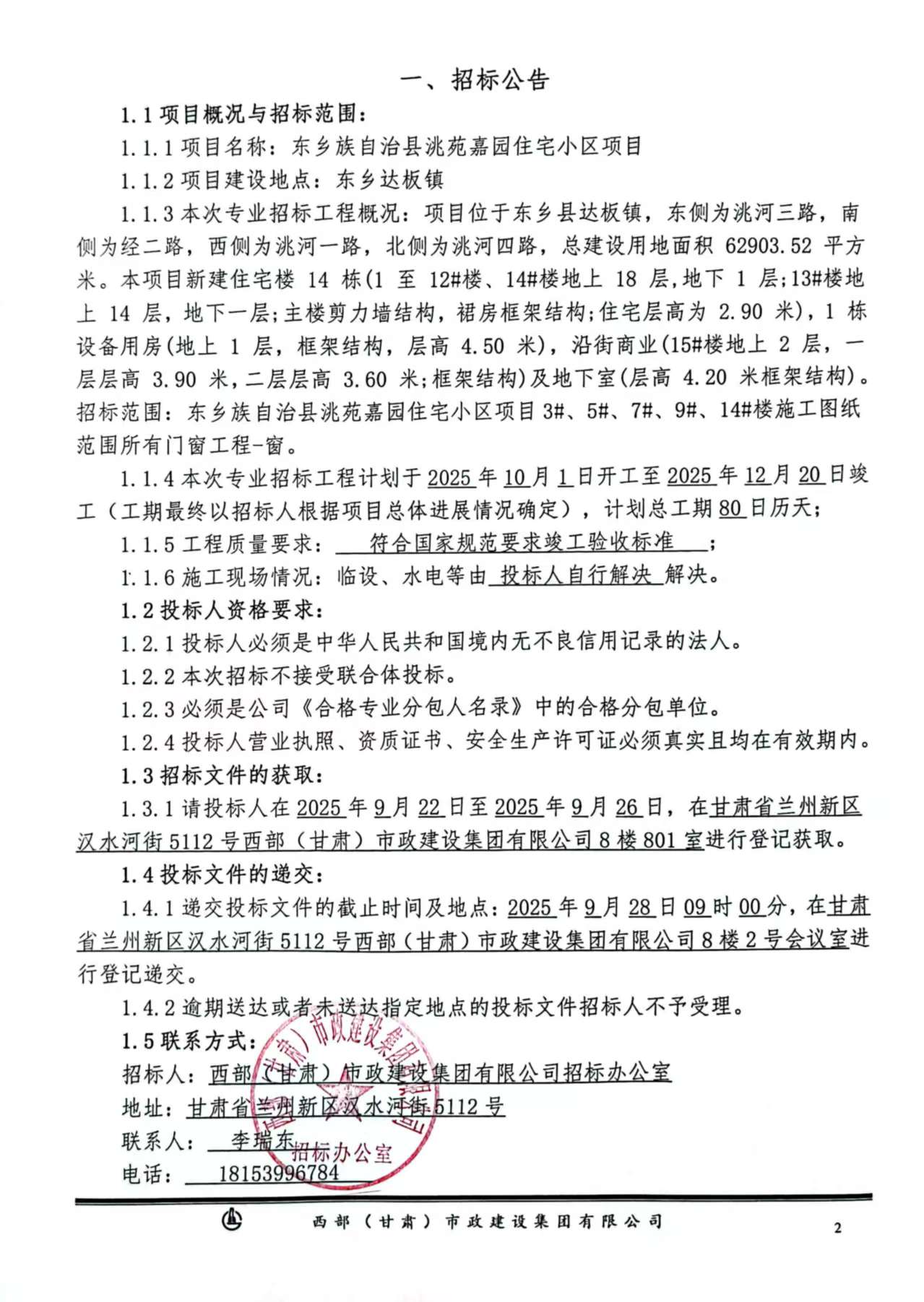 東鄉(xiāng)族自治縣洮苑嘉園住宅小區(qū)項目-窗-招標公告